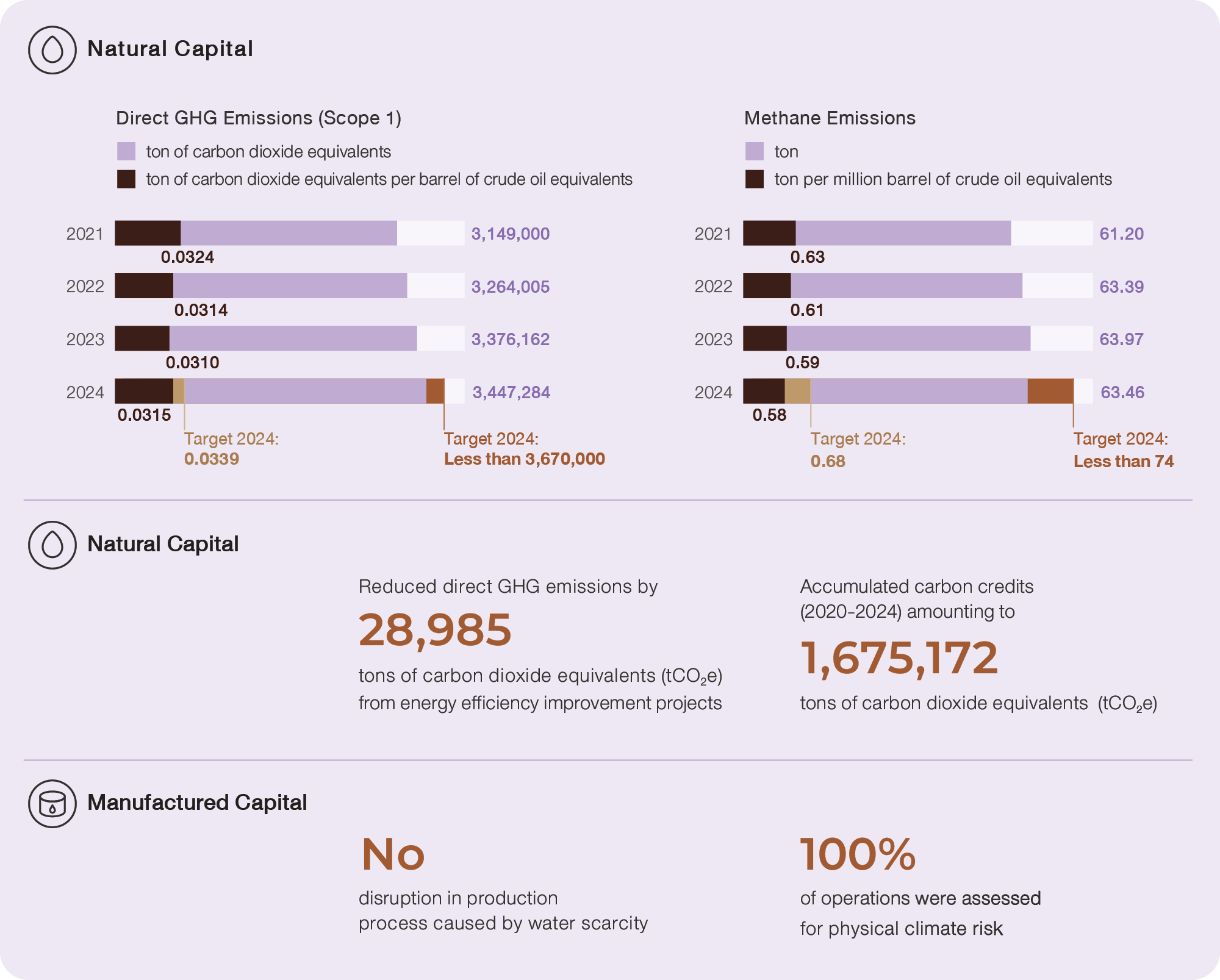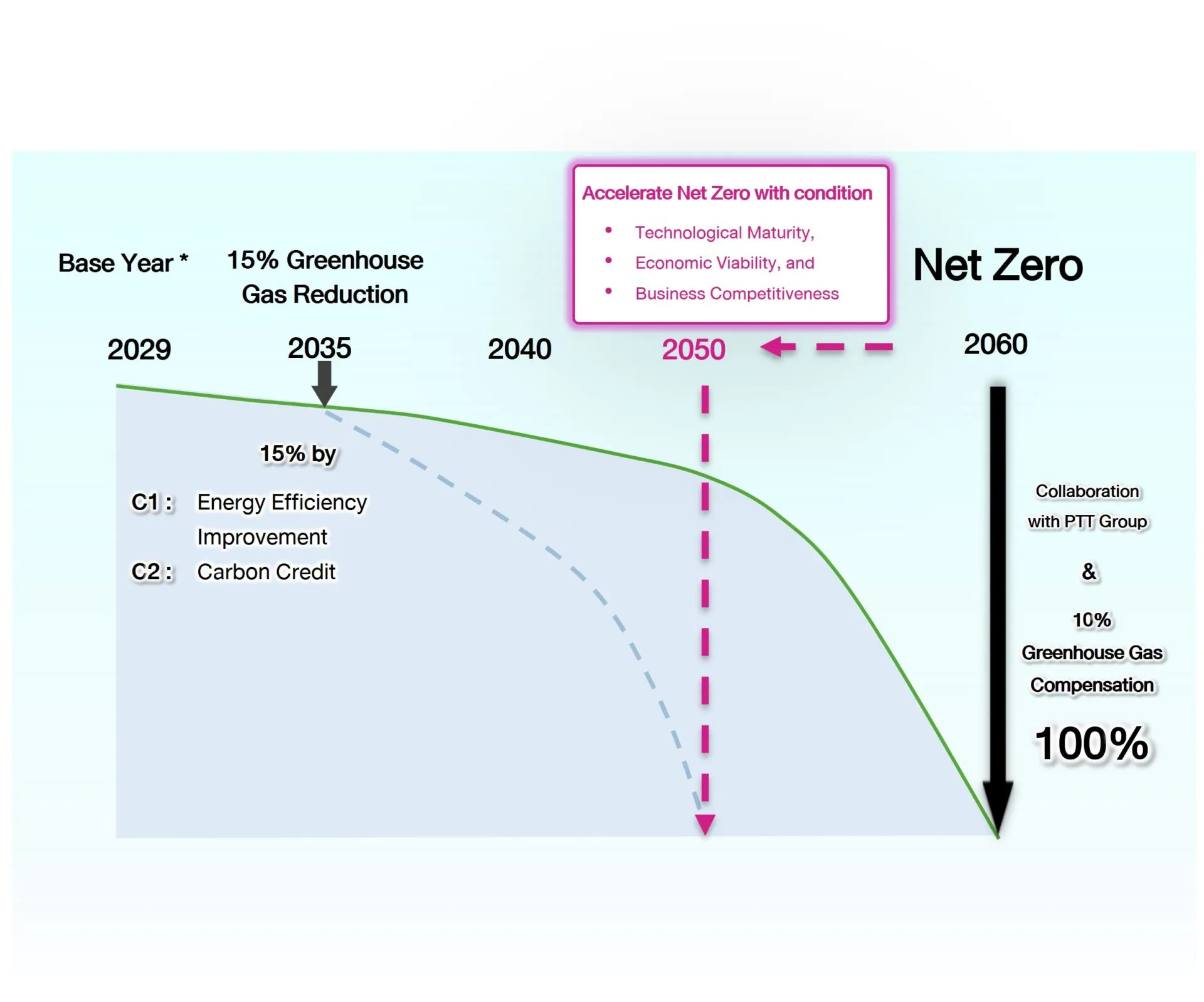 In 2024 strategic review, the Board endorsed the Net Zero GHG Emissions Pathway and considered budget and investment approach in low carbon technology, such as studying the installation of Carbon Capture technology in production unit, studying Blue and Green Hydrogen business, and studying Sustainable Aviation Fuel (SAF) production.