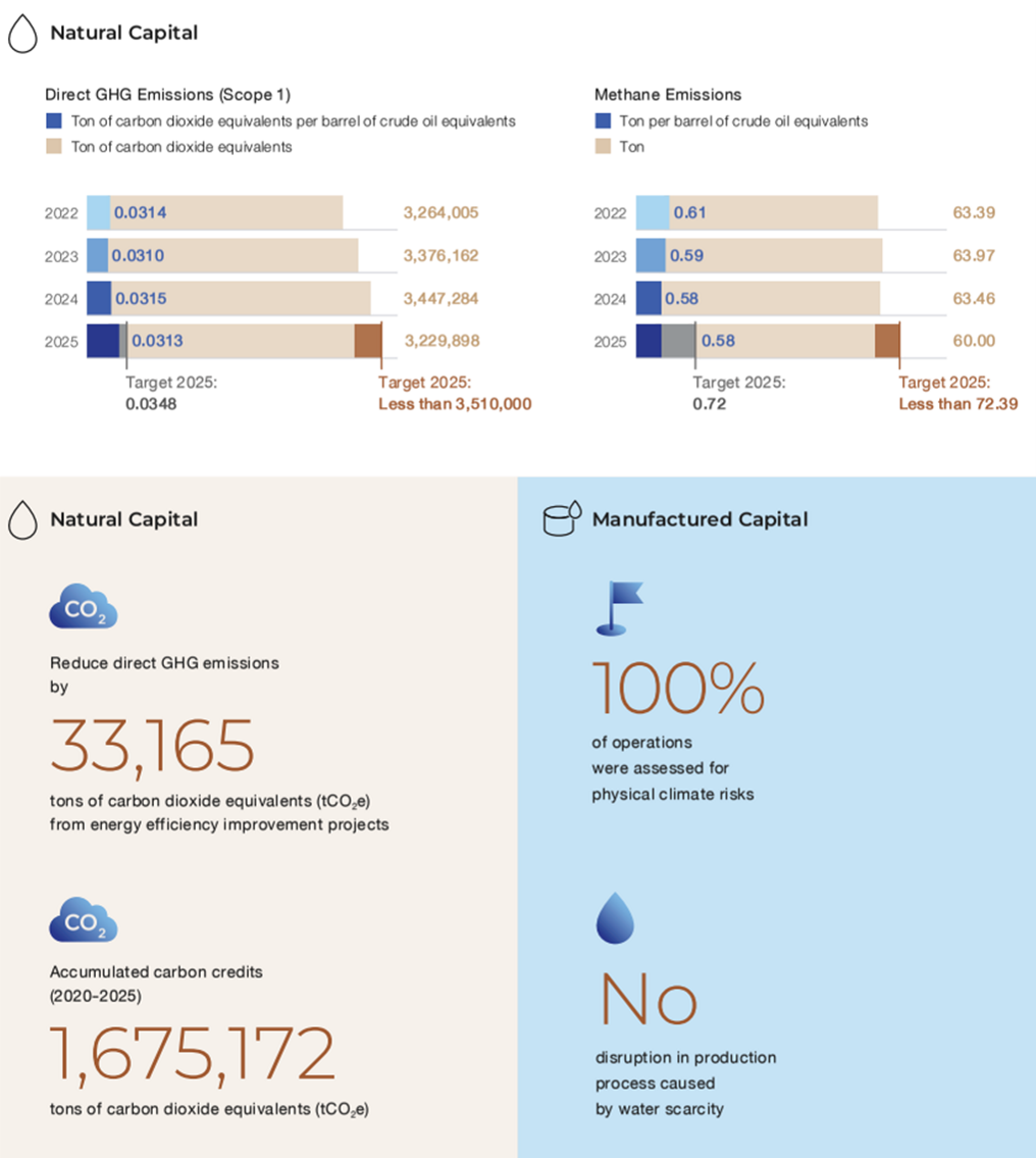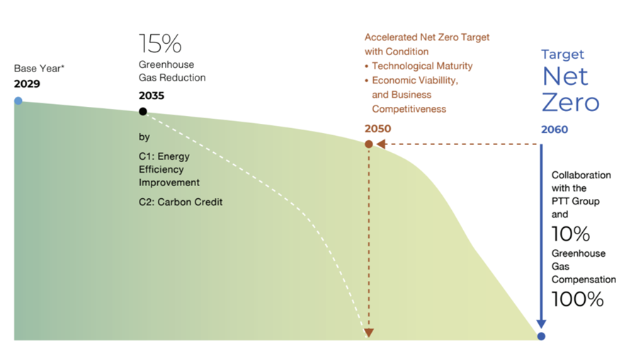 Furthermore, during the 2025 annual strategy review, the Board of Directors approved a revision of the Thaioil Group’s Net Zero GHG Emissions Target and Pathway. This includes adjusting the base year from 2026 to 2029. Additionally, the Group is prepared to accelerate its Net Zero target to 2050, provided there is support for economically viable technologies that enhance business competitiveness, in alignment with the adjustment of the national Net Zero target.