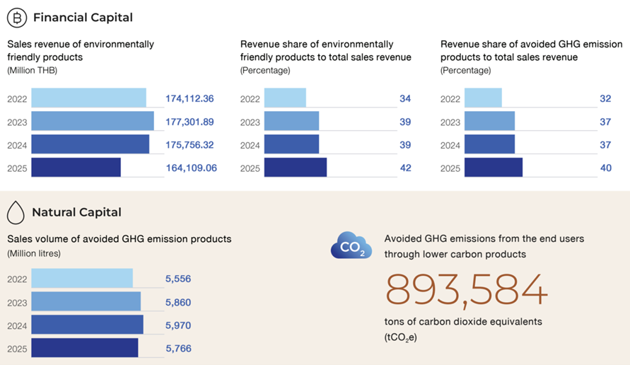 In 2025, Thaioil Group had 5 environmentally friendly product categories, and 9 types of products that contribute to climate change mitigation in alignment with the objectives of the EU Taxonomy Framework as follows: