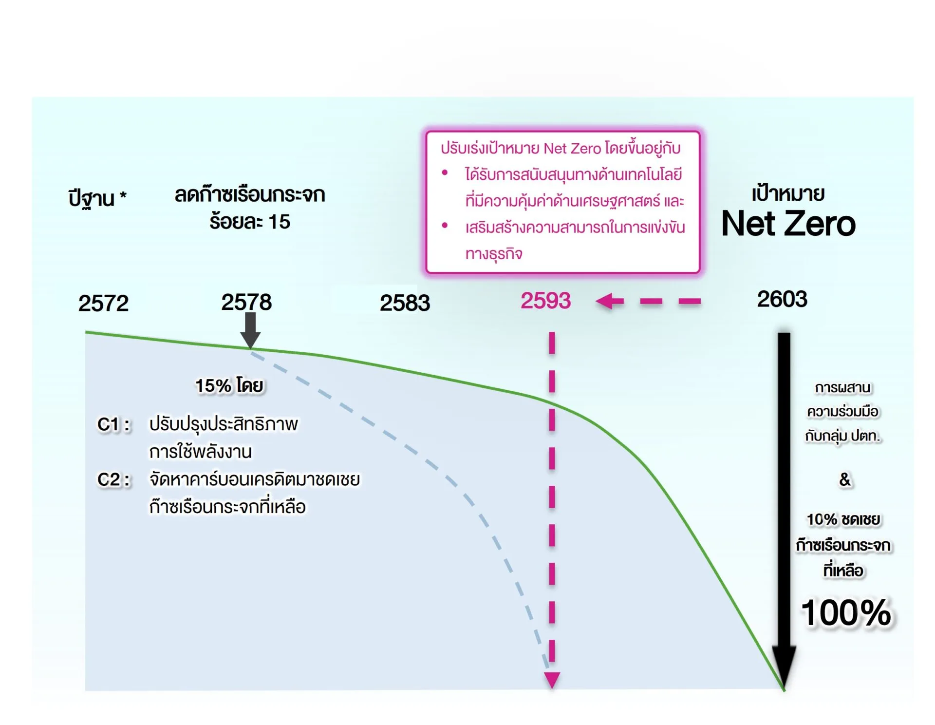 การปลดปล่อยก๊าซเรือนกระจกสุทธิเป็นศูนย์ (Net Zero GHG Emissions) ภายในปี 2603