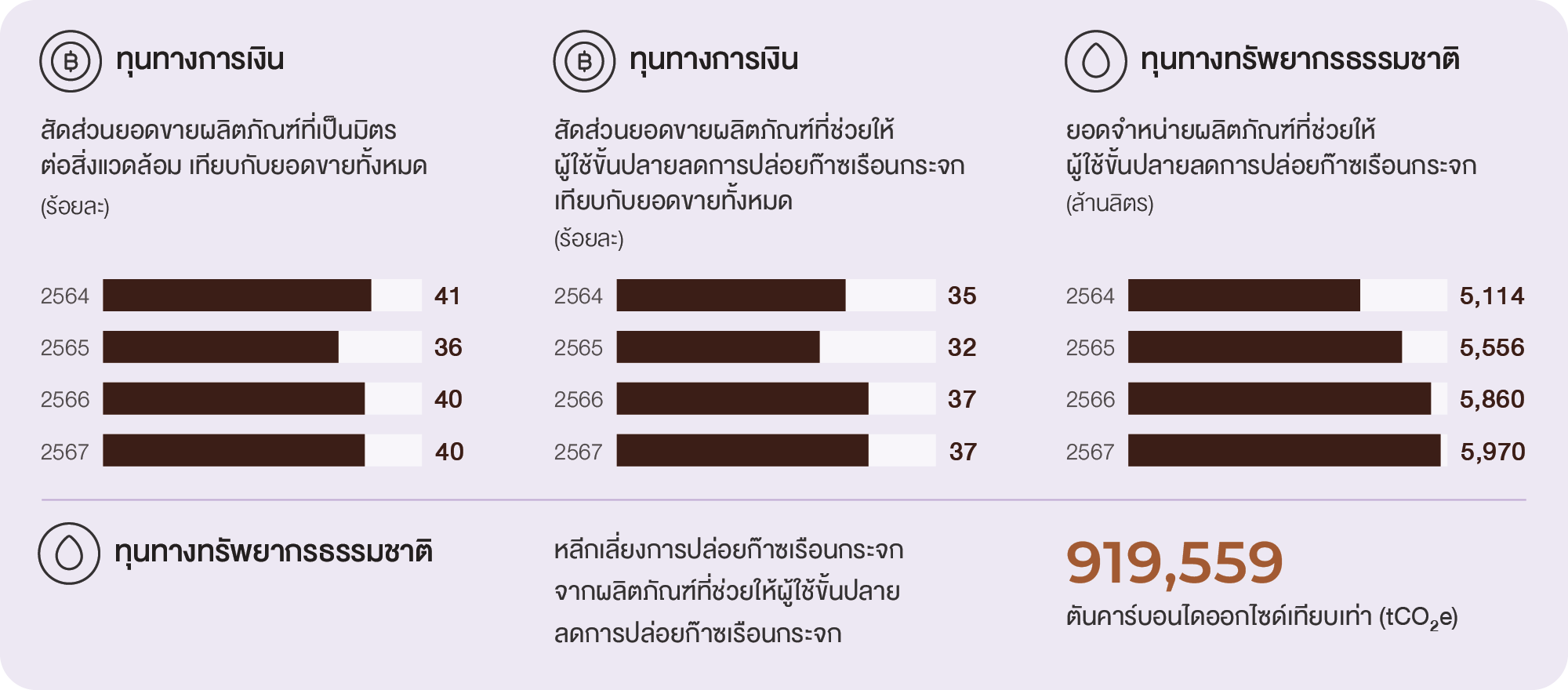 จำหน่ายผลิตภัณฑ์คาร์บอนต่ำ เพื่อลดปริมาณก๊าซเรือนกระจกขั้นปลายจากผู้ใช้ ได้แก่ แก๊สโซฮอล์ ไบโอดีเซล ไบโอเอทานอล เป็นต้น