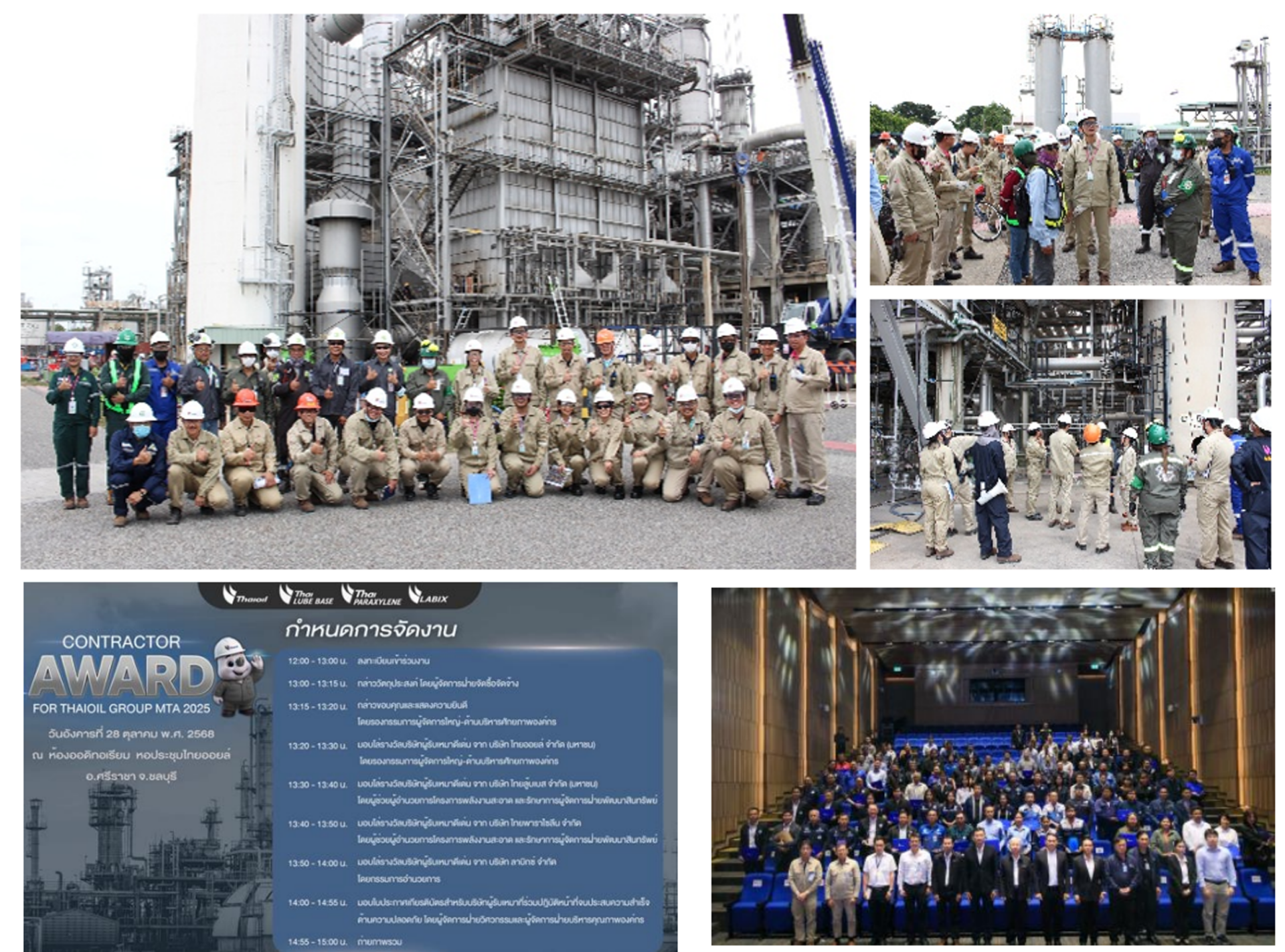การจัดกิจกรรม Management Site Walk and Contractor Award for MTA ประจำปี 2568ระหว่างผู้บริหารไทยออยล์ กับผู้บริหารบริษัทรับเหมาลงพื้นที่ซ่อมบำรุงใหญ่เพื่อพบปะ พูดคุย รับฟังและแลกเปลี่ยนความคิดเห็น พร้อมสร้างขวัญและกำลังใจแก่พนักงานและผู้รับเหมาที่ปฏิบัติงานอยู่ นอกจากนั้นหลังจบงานซ่อมบำรุงใหญ่ ได้มีพิธีมอบรางวัลบริษัทผู้รับเหมาดีเด่น (Contractor Award) สำหรับบริษัทที่มาปฏิบัติงานซ่อมบำรุงใหญ่ของกลุ่มไทยออยล์ ที่มีผลการปฏิบัติงานที่ดีและไม่เกิดอุบัติเหตุอีกด้วย