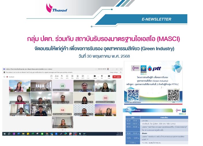 PTT Group CG Day โครงการความร่วมมือกับกลุ่ม ปตท. ซึ่งจัดเป็นประจำทุกปี เพื่อส่งเสริมและสนับสนุนให้คู่ค้ามีความรู้ความเข้าใจเกี่ยวกับการกำกับดูแลกิจการที่ดี (Good Corporate Governance) โดยในปี 2568 ได้เชิญคู่ค้ากลุ่มไทยออยล์ จำนวน 1,930 ราย เข้าร่วมงานนี้ ผ่านระบบ Online